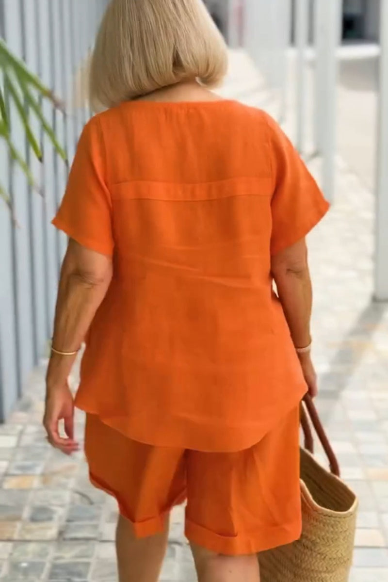 Expertly crafted in pure linen, the Fallon Top Set is designed for breathability and comfort even on the hottest days. The natural linen fabric feels luxuriously lightweight against the skin, helping you remain fresh and relaxed from morning to evening.